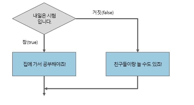 if문과 함께 사용하는 else문은 if문과는 반대로 주어진 조건식의 결과가 거짓(false)이면 주어진 명령문을 실행합니다.