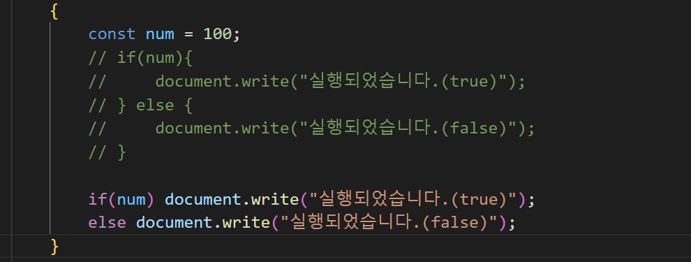 또, if문에 들어가는 중괄호를 생략해 간단하게 표현할 수 있습니다!