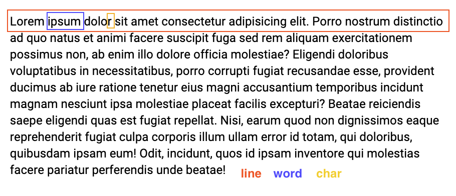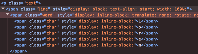 Split-type은 텍스트를 줄(lines), 단어(words), 그리고 글자(chars) 단위로 나누는 라이브러리이다.