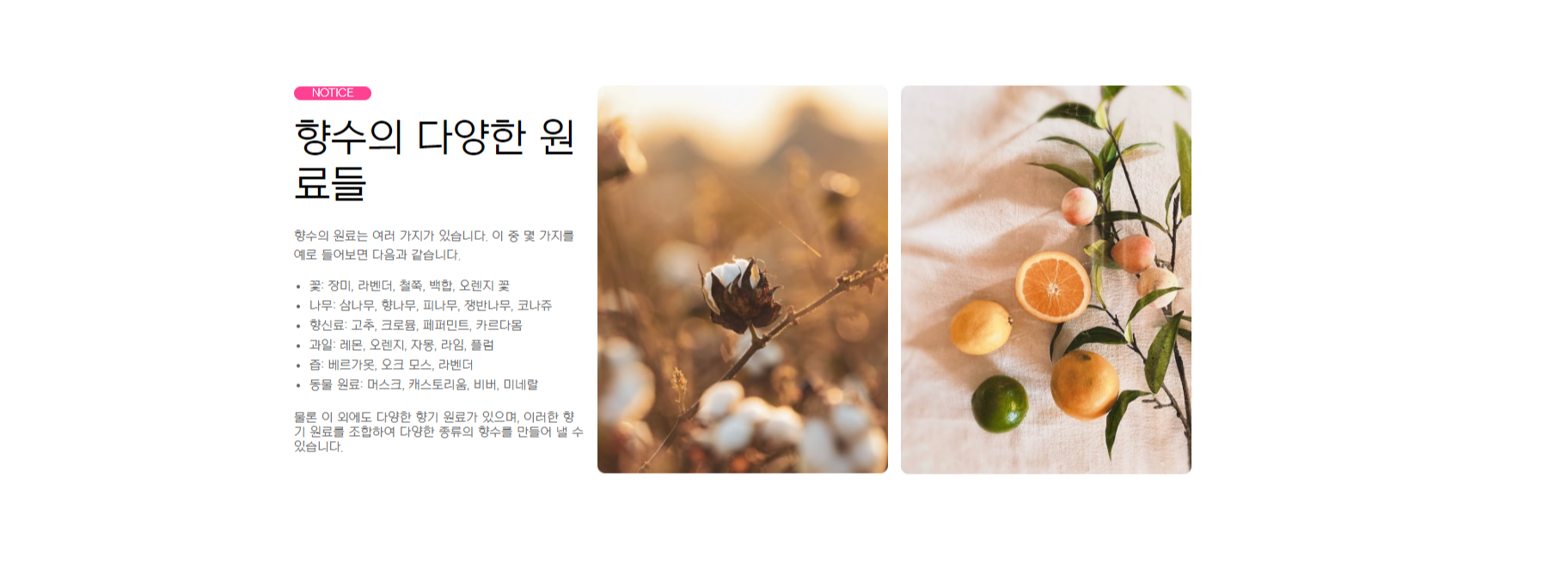 <h3 class="title">향수의 다양한 원료들</h3>